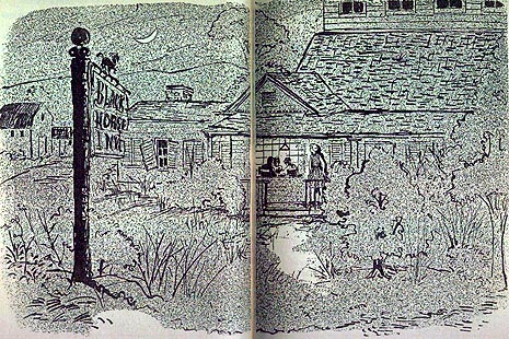 There were 8 line drawings throughout the text on two pages each. The text started on page 7 and due to the larger size of the pages the pages do not match up the same with the regular book version. Click on the thumbnails below to view these fine drawings by Polly Bolian: