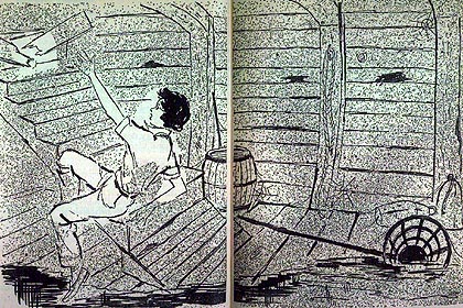 There were 8 line drawings throughout the text on two pages each. The text started on page 7 and due to the larger size of the pages the pages do not match up the same with the regular book version. Click on the thumbnails below to view these fine drawings by Polly Bolian: