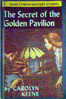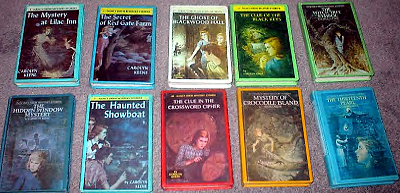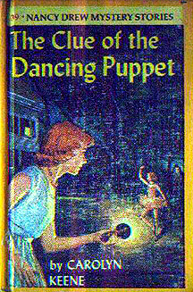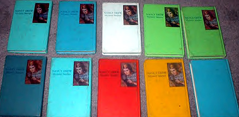 from the front cover art to volume #44, The Clue in the Crossword Cipher horizontally reversed--just like on some of the later yellow spine picture cover editions on the back cover.