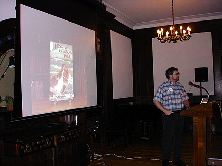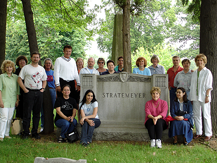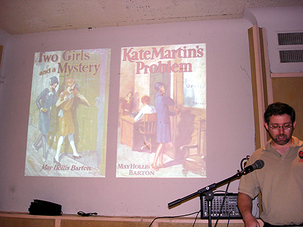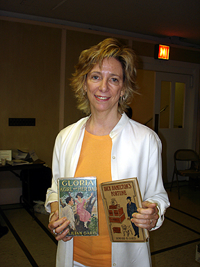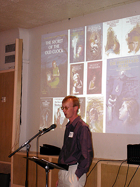 A series of videos/DVDs will soon be available documenting this historic conference. If you are interested, you may contact me using the e-mail link above. I have conference programs leftover for purchase: $5.00 each plus shipping. Contact me at the e-mail link above if you are interested--they feature great ads with pictures of Nancy Drew merchandise and a great deco cover of Nancy Drew's silhouette against the Manhattan skyline silhouetted.