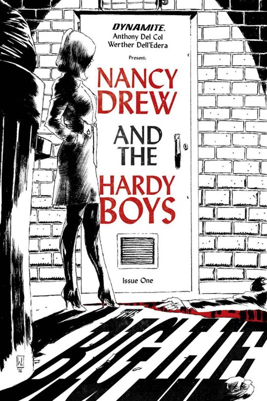Debuting March 2017 is a comic series from Dynamite, Nancy Drew & The Hardy Boys - The Big Lie - a six part series written by Anthony Del Col and illustrated by Werther Dell'Edera. It's a modern take on the classic series with a noir feel yet stays true to the characters while sending them on a journey through the seedy underbelly of Bayport on the trail of Fenton Hardy's killer. With a name like "The Big Lie" there's obviously more than meets the eye... Shown above are the main covers to collect and all the variants.