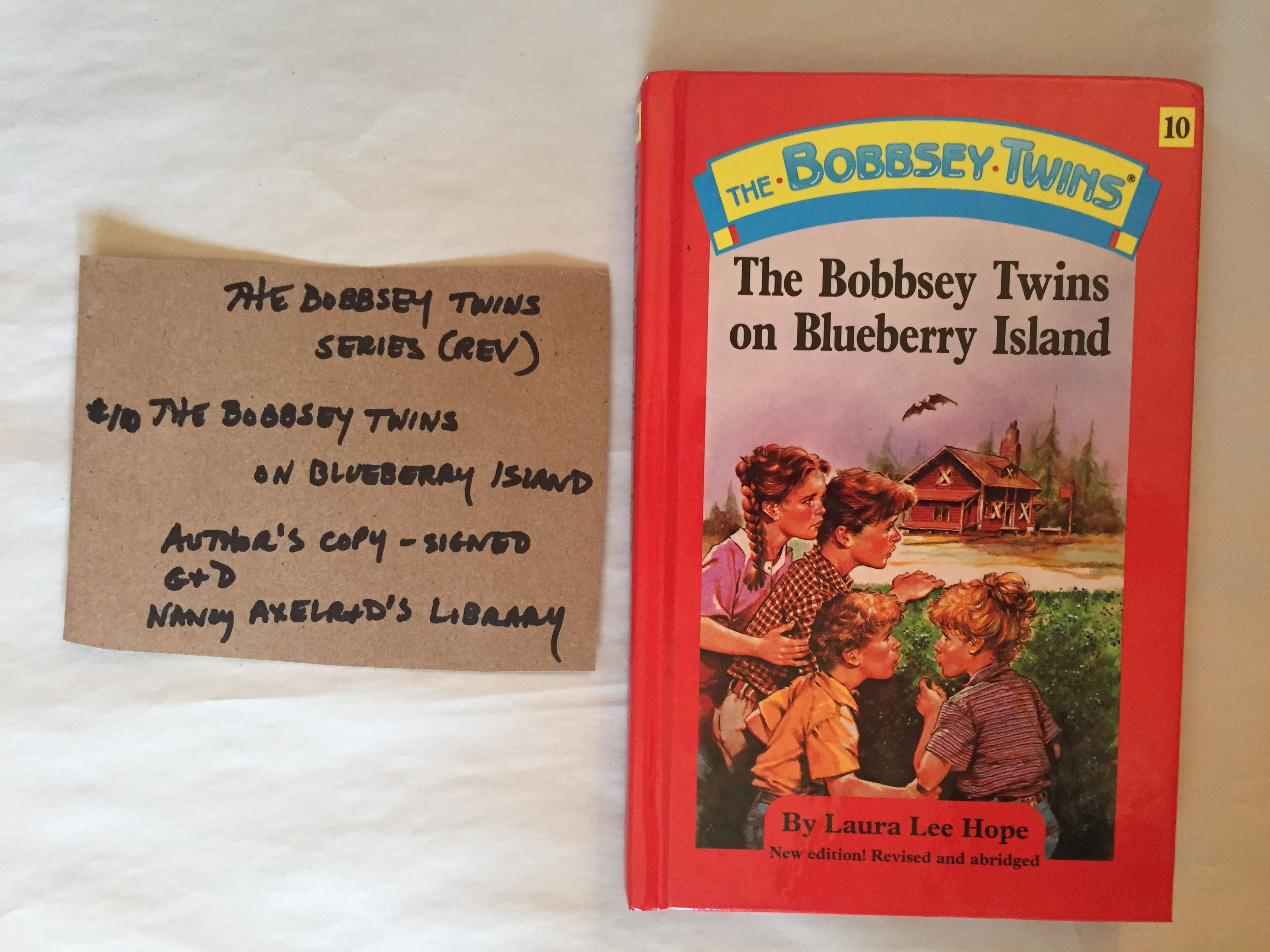 BOOK CONDITION: These books are THE BOBBSEY TWINS, Revised and Abridged editions by Nancy S. Axelrad (inside credit), Grosset & Dunlap, glossy red hardcovers, author’s copies. Books are all in very good condition, likely unread or flipped through once, tight bindings. All are signed by Nancy Axelrad and are author's copies. Any flaws will be noted below individually.
