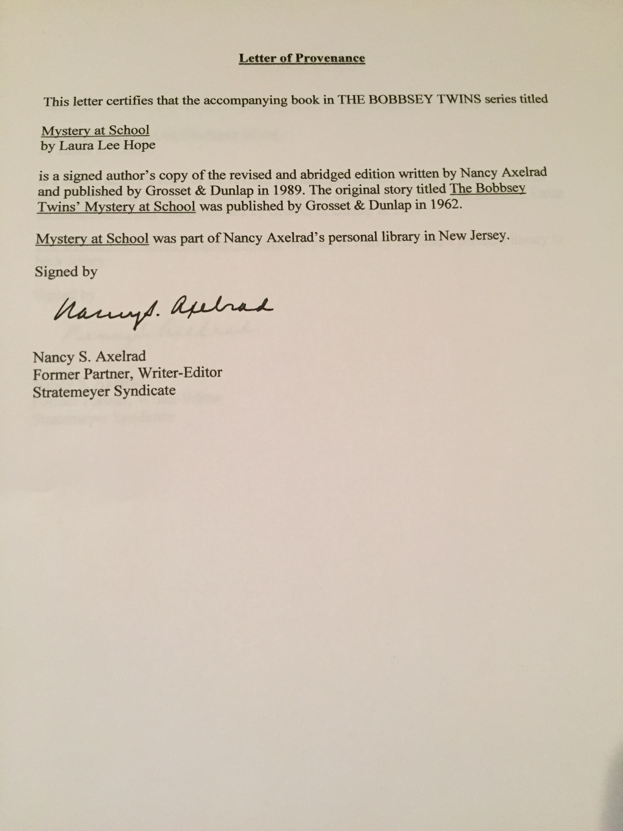 Also included are 3 article clippings about the new Bobbsey Twins revised series: