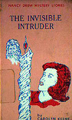 reverse pose of her from the cover art to volume #46, The Invisible Intruder, where her hand is drawn to her